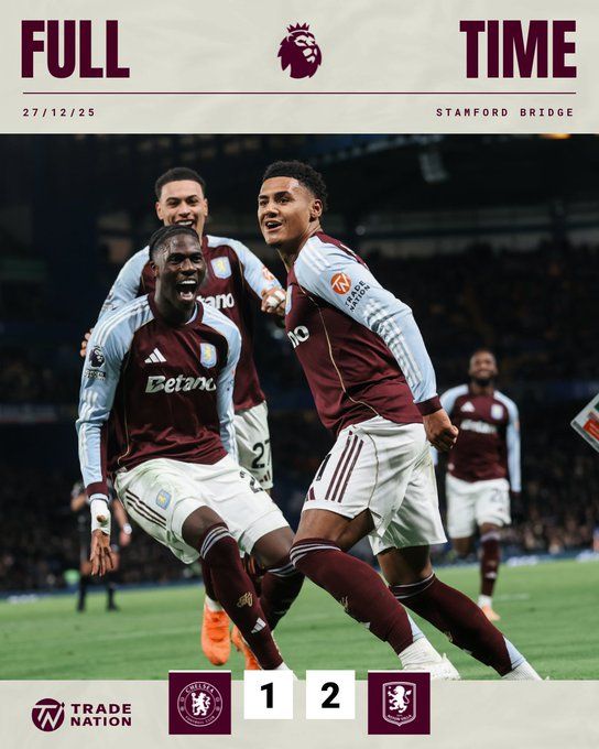 2025年12月28日 近13轮12胜!维拉2-1逆转切尔西 沃特金斯替补双响维拉3分紧追榜首