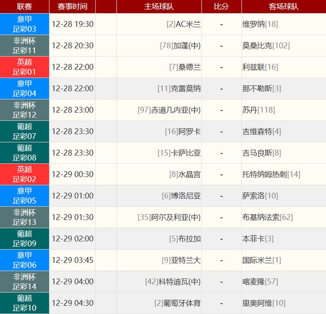其他赛事比分: