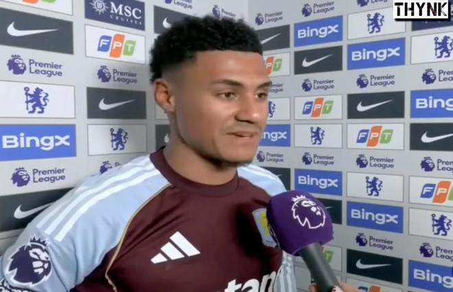 英超第18轮,阿斯顿维拉客场2-1战胜切尔西,本场比赛上演梅开二度的沃特金斯接受了当日比赛节目的赛后采访。
