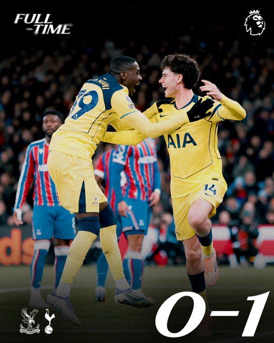 北京时间12月29日00:30,英超联赛第18轮,水晶宫坐镇主场迎战托特纳姆热刺。上半场,里沙利松进球被吹,格雷头球破门。下半场,德文尼错失良机,里沙利松破门再度被吹,奥多贝尔射中立柱。最终热刺1-0击败水晶宫。本场比赛过后,热刺积25分,排在第十一名,水晶宫积26分,排在第九名。