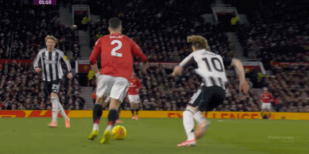 这是典型的害怕的体现,他觉得纽卡斯尔即将突破曼联当时的防守阈值,尤其是纽卡斯尔即将换上替补,进行新一轮的冲击进攻的时候,阿莫林率先做出应对,换上约罗组成了四中卫,并且在他们的身前布置了多尔古和达洛特。