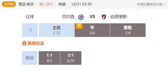 竞足 周二007英超切尔西VS伯恩茅斯