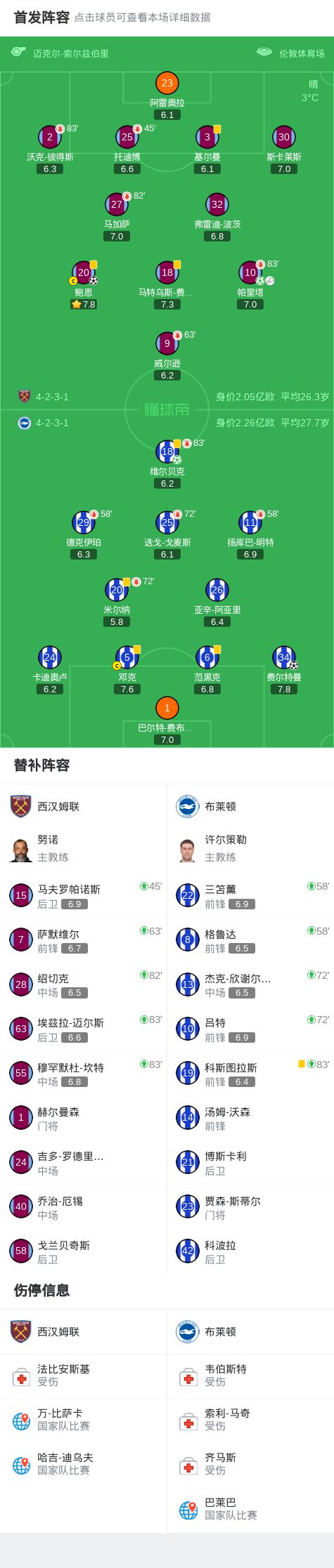 半场:西汉姆联2-1布莱顿,帕奎塔传射+送点,维尔贝克点球二中一
