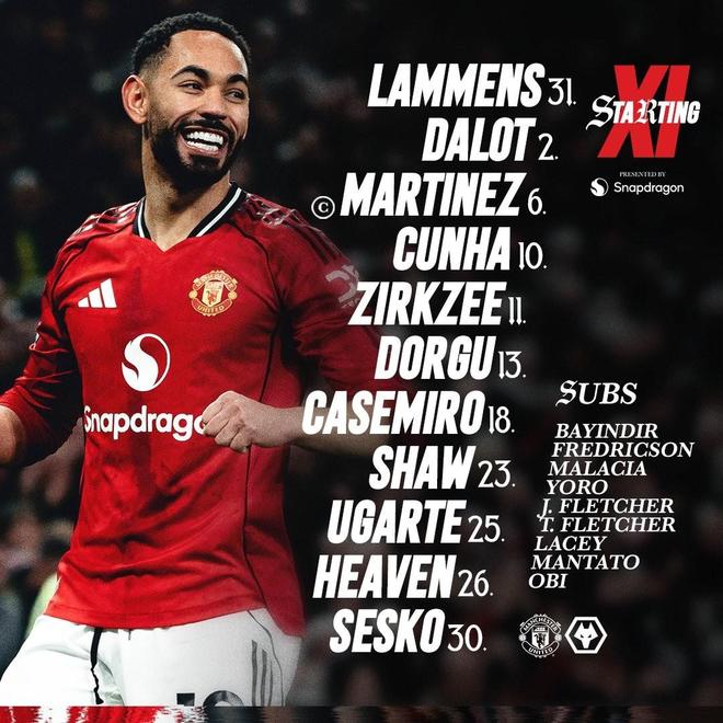 曼联vs狼队:卡塞米罗、利桑德罗-马丁内斯首发,黄喜灿、多尔蒂出战