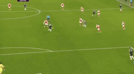 第48分钟,阿森纳球员萨卡开出角球,加布里埃尔在马丁内斯的腋下将球打进,这也是阿森纳本场获得的第一个角球。阿森纳1-0阿斯顿维拉。