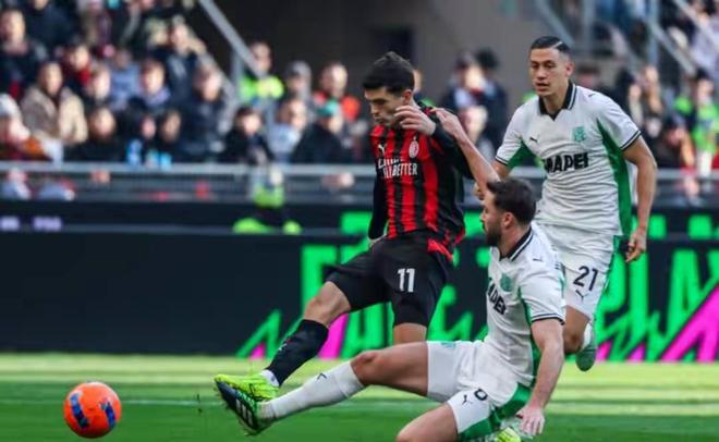 下半场刚开始,米兰便展现出强烈的进攻欲望。第47分钟,莱奥禁区左侧得球后一脚精彩的兜射击中横梁,但裁判示意皮球此前已出底线。不过米兰的进攻浪潮并未停歇。