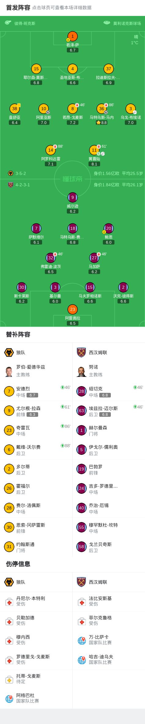 2026年01月04日 联赛首胜!狼队3-0西汉姆联 黄喜灿传射马特乌斯·马内首球+造点