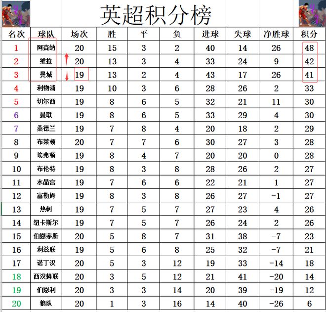 英超最新积分战报 阿森纳逆转多曼城7分 黑马升至第2 副班长首胜