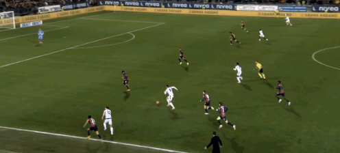 32:07,高位执行施压的奇克一防二被撞墙配合破解是没有办法的事,但对随后冲起来的帕莱斯特拉无动于衷了;莫德里奇同样跟不上动态的年轻人;到巴尔特萨吉需要前顶时再次迟缓,但卡利亚里最后一步的传接球出现瑕疵,没有创造出三打一的优势局面。