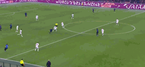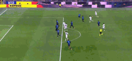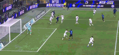 第19分钟,劳塔罗抢断后无私横传,黑格姆及时回防化解