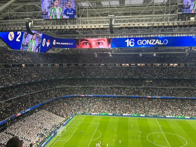 “皇马再入一球,贡萨洛的帽子戏法!”贡萨洛戴帽之际,伯纳乌现场进球播报并未按照惯例仅报送进球队员,而是特别强调了这位小将的成就。伯纳乌死忠看台也在这一刻高唱,“贡萨洛是真正的马德里主义者!”即使是再资深的皇马球迷,也太久没有见到过此等神迹:皇马青训出产的本土年轻射手,在伯纳乌主场上演完美帽子戏法。比赛最后阶段阿隆索将贡萨洛替换下场,伯纳乌全场掌声雷动,球迷们高呼着贡萨洛的名字,向这位小将表示由衷祝贺。