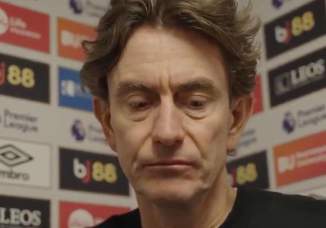 这真的非常痛苦,是一个极其痛苦的夜晚。我认为球员们已经拼尽了全力。我觉得我们开场阶段踢得很好,而伯恩茅斯一直都是一支非常难对付的球队。但在两次定位球的第二阶段防守中,我们的警觉性和处理质量都不够,尤其是上半场的第二个失球,我们必须做得更好。不过,我非常欣赏球队展现出来的心态、信念和斗志。下半场我们完全掌控了比赛局面。无论是皮球击中门柱、错失机会,还是被判无效的点球,我们始终留在比赛中,坚持执行比赛计划,坚持去做正确的事情。而在此前局面变得困难的时候,我们并不总能做到这一点。