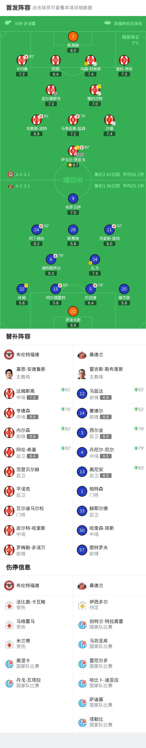 布伦特福德3-0桑德兰,伊戈尔-蒂亚戈双响,亚尔莫柳克建功