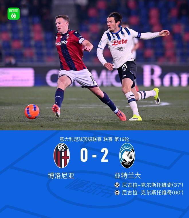 亚特兰大客场2-0博洛尼亚,尼古拉-克尔斯托维奇梅开二度