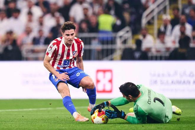 大都会一战,胡利安·阿尔瓦雷斯面对皇马梅开二度闪耀全场,如今再战皇马,“小蜘蛛”的状态已大不如前,从11月初至今,阿尔瓦雷斯仅在欧冠赛场有过斩获,联赛颗粒无收。虽然马竞主席塞雷索在赛前采访中对“小蜘蛛”恢复状态充满信心,但本场阿尔瓦雷斯再度哑火,虽然勤勉依旧,也时常拉扯到禁区外围试图给队友们制造机会,全场4次关键传球也是场上最高,但却一直没能找到射门脚感,下半场补时阶段几乎无人盯防的他射门大幅偏出,马竞就此错失最后扳平机会。