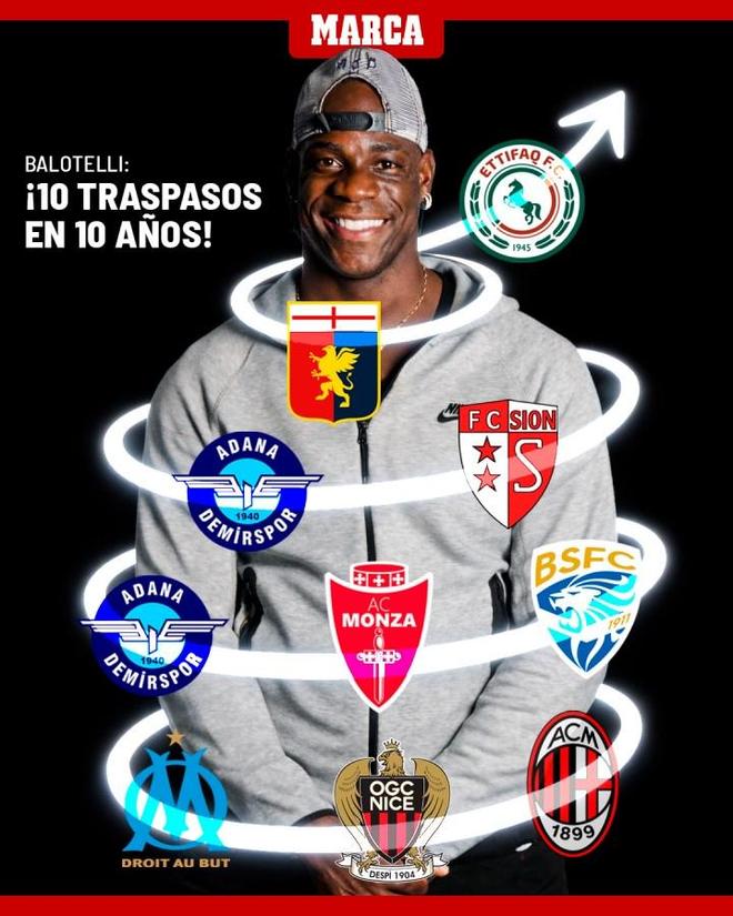 即将加盟达曼协作,巴洛特利10年内已转会10次