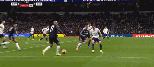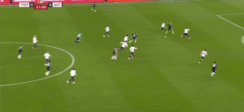 第45+2分钟,布恩迪亚脚后跟做球,罗杰斯破门,维拉2-0热刺