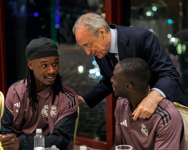 赛前打气,弗洛伦蒂诺到皇马下榻酒店与球员、教练组打招呼