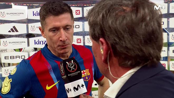 在巴萨与皇马的西超杯决赛中,莱万为球队攻入第二球,帮助红蓝军团以3-2击败对手捧杯,赛后他接受了Movistar+的采访。