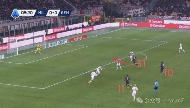 实际上奇克同样会压进禁区踢成424,为了围攻热那亚两个边卫也会深度参与进攻。
