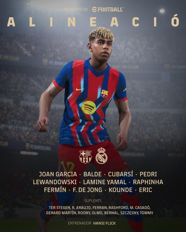 巴塞罗那首发:13-霍安-加西亚、3-阿莱士-巴尔德、5-库巴西、24-埃里克-加西亚、23-孔德、8-佩德里、21-弗朗基-德容、16-费尔明-洛佩斯、10-亚马尔、11-拉菲尼亚、9-莱万多夫斯基