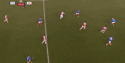 第8分钟,阿森纳角球机会,埃泽将球送入禁区,马丁内利头球后蹭,乱战中多泽尔不慎将球碰入自家球门,阿森纳1-1朴茨茅斯。