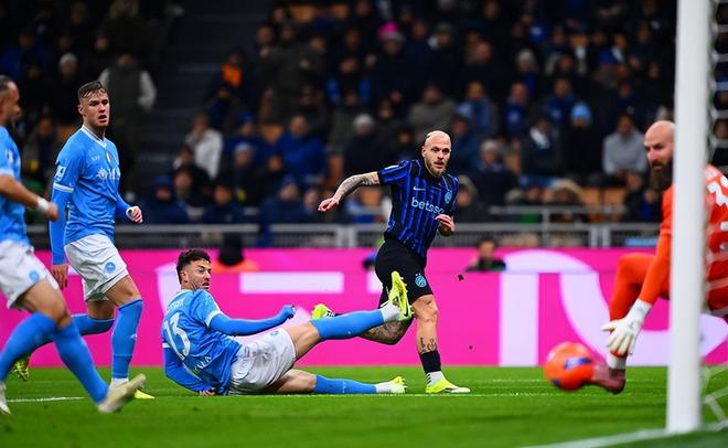第81分钟,波利塔诺右路传中,诺阿-朗底线前将球救回,比塞克防守漏人,麦克托米奈抽射再次比分扳平,2:2!麦克托米奈梅开二度,又一次拯救了那不勒斯。第92分钟,博尼禁区内倚住防守回敲,姆希塔良劲射击中了立柱,错过了绝杀的机会;最终双方是2:2握手言和;虽然连胜步伐被终止,但这一轮米兰也未能取胜,国米在积分榜上依然拥有3分的领先优势。