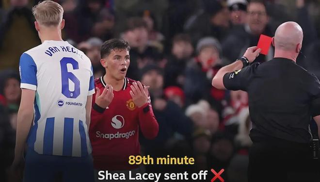 1月12日,足总杯第三轮,曼联1-2不敌布莱顿。这不是一场普通的失利,这是一次耻辱性的“一轮游”。当终场哨响,镜头捕捉到的不是遗憾,而是绝望——18岁的小将莱西在第90分钟因为砸球发泄,两黄变一红被罚下场。
