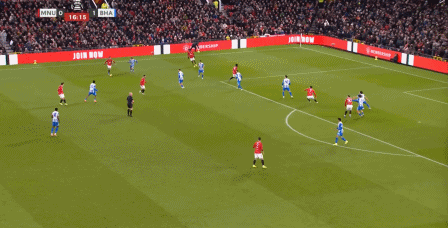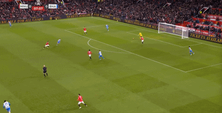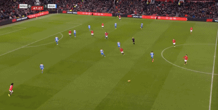 如果曼联真有这样的实力,如此进攻倒是也没什么问题,但在比赛第8分钟,在布莱顿第一次持球推进的时候,维尔贝克就在约罗身前轻松做好了一点,让曼联在后腰无法到位的情况下,被迫以毫无层次的四后卫进行防守: