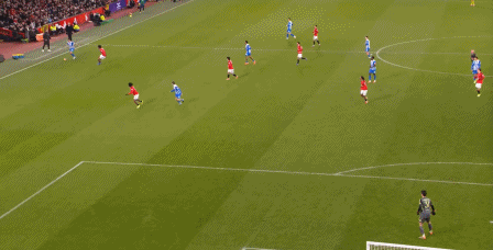 这种毫无顾忌的前场换位,很容易在转换阶段给防守埋下巨大的隐患,有一个强大的后场都不见得能兜得好,更不用说是现在和今天曼联的后场了: