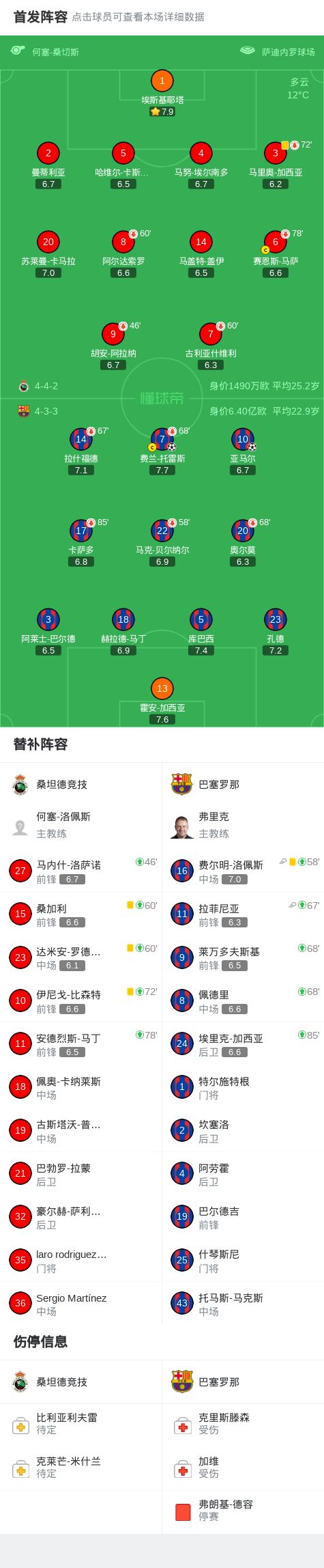 巴萨2-0桑坦德竞技,费兰-托雷斯建功,亚马尔破门