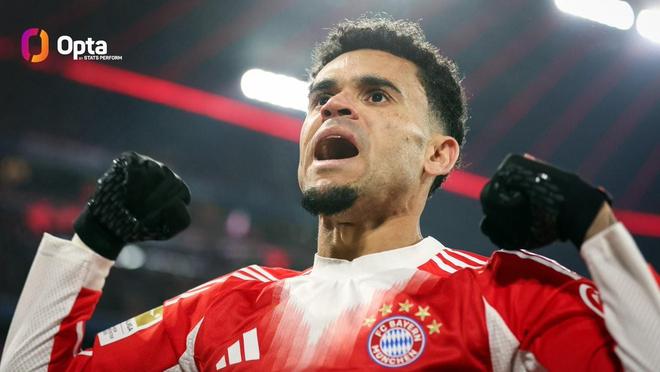 迪亚斯本赛季德甲3次单场参与至少3球,仅次于凯恩