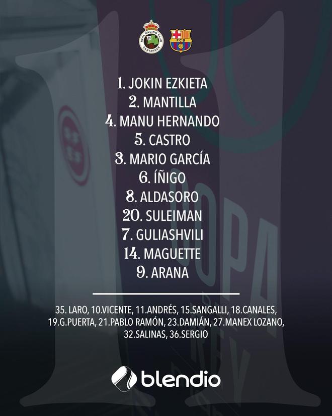 桑坦德首发:1-埃斯基耶塔、3-马里奥-加西亚、2-曼蒂利亚、5-哈维尔-卡斯特罗、4-马努-埃尔南多、14-马盖特-盖伊、8-阿尔达索罗、6-赛恩斯-马萨、20-苏莱曼-卡马拉、9-胡安-阿拉纳、7-古利亚什维利