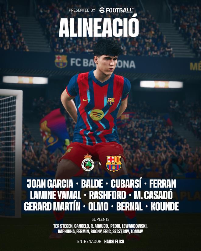 巴萨客战桑坦德:亚马尔、拉什福德首发,奥尔莫、费兰出战