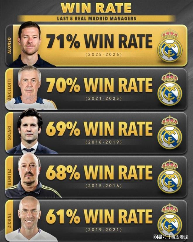 阿隆索带领皇家马德里,一共参加了34场比赛,胜率高达七成以上,比安切洛蒂和齐达内等名帅都要高,场均得分也比勒沃库森时期还要多。如果以曼联的角度来看,这是相当出色的,可是,以皇马角度来看就未必如此了。跟安切洛蒂情况差不多,阿隆索也无法解决球队内部的矛盾,维尼修斯是奔着金球奖而去的,那么,姆巴佩呢,贝林厄姆呢?