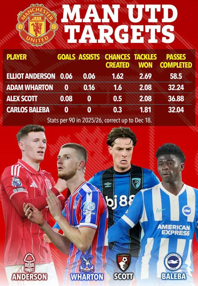 青训中场科比·梅诺和6000万欧元铁腰乌加特也面临着不确定的未来,所以曼联注定会在中场位置引援。