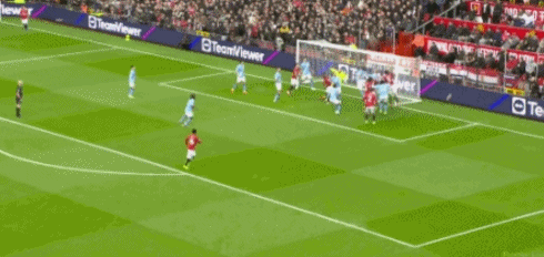 开场仅仅3分钟,曼联获得角球,马奎尔小禁区头球冲顶击中了横梁,曼城逃过一劫。