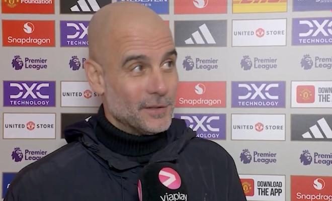 英超第22轮,曼城客场0-2不敌曼联,赛后,曼城主帅瓜迪奥拉接受了Viaplay Fotball的采访。