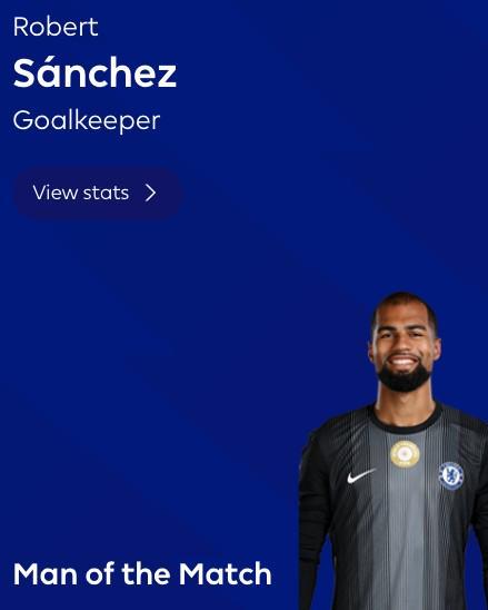 6次扑救,罗伯特-桑切斯当选切尔西vs小蜜蜂全场最佳球员