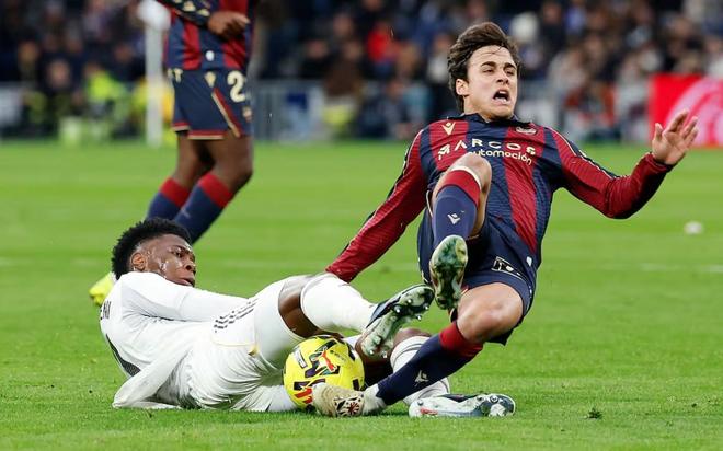 皇家马德里中场楚阿梅尼在对阵莱万特的比赛中吃到本赛季第五张黄牌,将在下周做客比利亚雷亚尔的联赛中停赛缺席。与此同时,维尼修斯同样处于黄牌警戒状态,但本场暂未被出示黄牌。