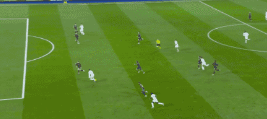 第33分钟姆巴佩接到队友后场的长传后,大禁区前沿不停球直接凌空打门,皮球又一次偏出立柱,半场比赛结束之前,莱万特在前场获得了一个位置非常好的定位球机会,巴勃罗马丁内斯直接起脚轰门,皮球擦着立柱出了底线,惊出了伯纳乌球迷一身冷汗。