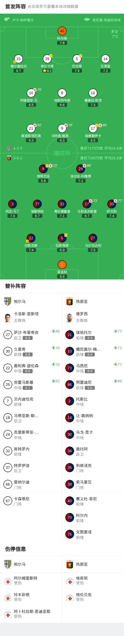 帕尔马0-0热那亚,双方互有攻守