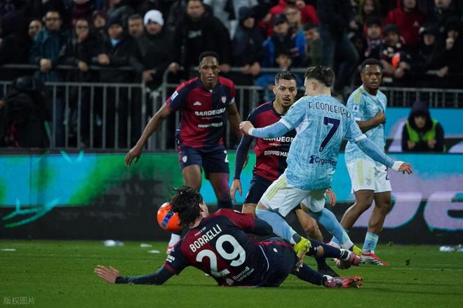 上半场剩余时间,尤文持续向对手禁区施压,却始终无法敲开球门。第25分钟,戴维背身做球后,米雷蒂的近距离抽射被卡利亚里门将卡普里莱稳稳扑出;第32分钟,伊尔迪兹禁区内突破时倒地,主裁不仅未予理会,反而出示黄牌警告其假摔,让尤文的进攻士气再度受挫。反观卡利亚里,尽管控球率仅22%,却凭借紧凑的5-3-2防守阵型,将尤文的多次攻势化险为夷,半场双方0-0战平,斑马军团空有场面优势,未能转化为比分领先。