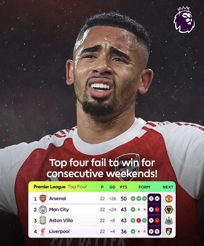 尽管,枪手在积分榜形势目前有7分优势,但是身后的曼城依旧是虎视眈眈,尤其是阿森纳也暴露出了明显的问题,连续两场联赛无法取得进球,阿尔特塔的球队需要在进攻端找到解决方法。