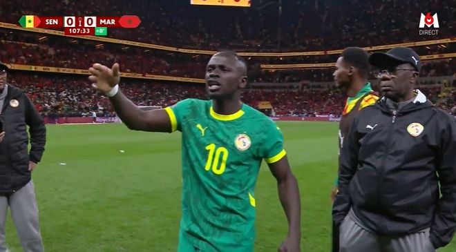 不过,塞内加尔队长马内留在了场内,主动承担起稳定军心的责任。尽管对点球判罚同样感到不公,这名左边锋仍拦住准备离场的队友,用强硬而直接的方式号召全队重返赛场。