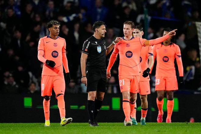 周日晚间西甲联赛,巴塞罗那客场1-2不敌皇家社会,球队11连胜的纪录就此终结。赛后巴萨队长弗伦基・德容难掩怒火,向主裁判希尔・曼萨诺发起激烈炮轰,直言这位主裁看向自己的神情仿佛在说“我比你厉害”,同时怒斥裁判在判罚、补时等环节的争议操作,成为赛后焦点。
