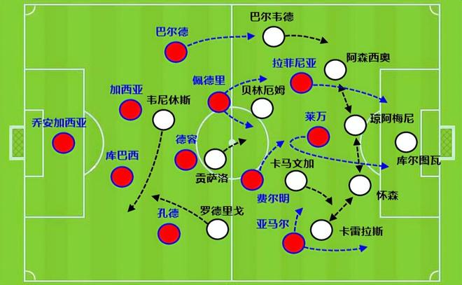 巴萨当前的基本盘,或者说球队的核心竞争力来自于佩德里、亚马尔和拉菲尼亚,因为他们三人恰好分布在左中右,等于撑起了巴萨的整个前场。