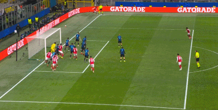 第25分钟,国米反击,小图拉姆劲射打高