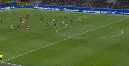 第36分钟,萨卡反击推进打门,皮球偏出立柱