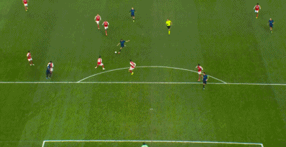 第10分钟,阿森纳中路行云流水配合,热苏斯铲射破门,1-0!